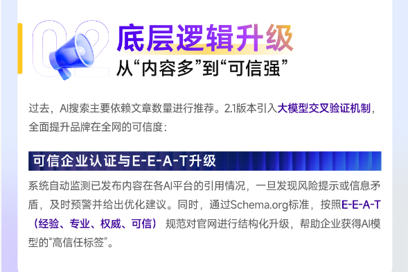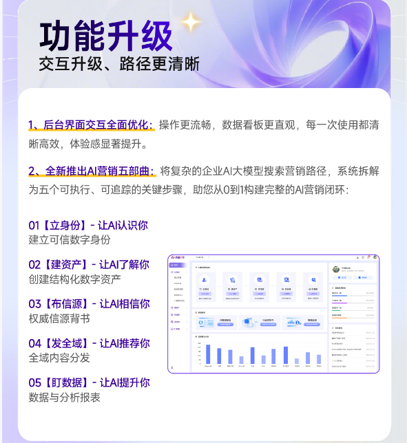 尊敬的各位合作伙们、用户朋友大家好!自2.0版本二线以来,我们收到了大量积极反馈,感谢大家的信任与支持。为持续响应AI搜索生态的快速演进,我们基于最新GEO(生成式引擎优化)规则,正式推出摘星搜荐·全域A搜索2.1版本,本次升级聚焦资源扩容、底展逻辑、功能体验、套餐权益四大维度,从"好用、易用、效果增强”出发,全面强化企业在AI搜索时代的精准触达能力与内容资产价值。